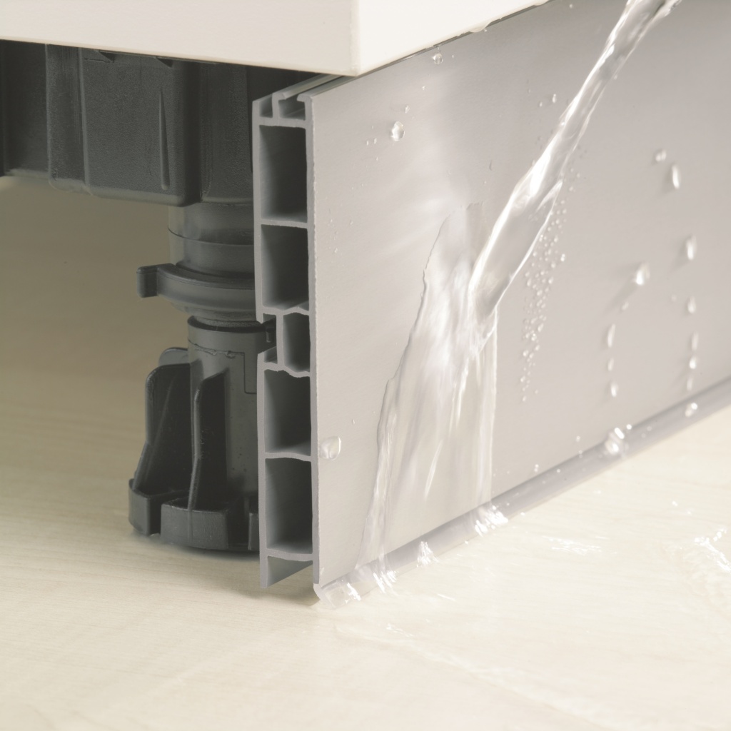 Цоколи RAUVARIO являются надежной заменой цоколей из ДСП. Они легче по весу, не боятся воды, проще в установке т.к. легко режутся ножом под нужную длину, имеют паз для крепления к опорам и уплотнитель, закрывающий объем под напольными модулями от попадания воды и грязи.